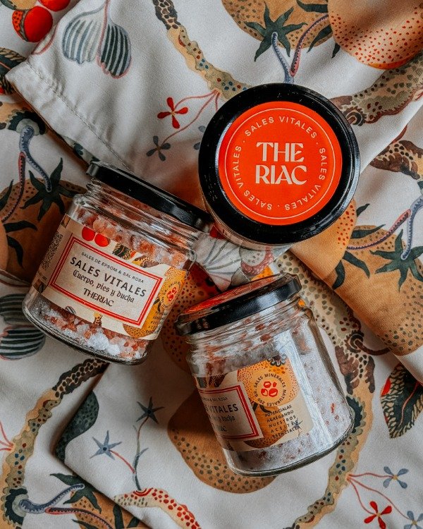 - Frasco de sales para baño (200 g) — mezcla de sal de Epsom y sal rosada que relaja músculos y revitaliza la piel.